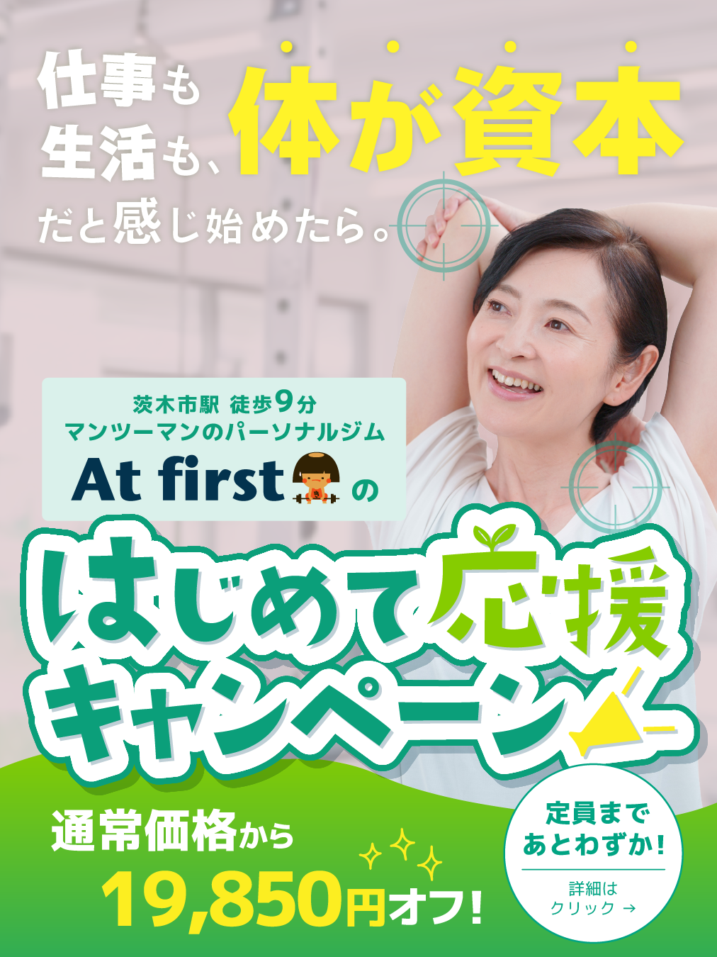 当店は、トレーニングが初めての初心者から中高年まで、どなたでも年齢や性別に制限なく安心してトレーニングできるジムです。ダイエット、運動不足、綺麗なスタイルを手に入れたい等、様々なニーズにお応えします。完全予約制で待ち時間もなく、個室なので人目を気にせずトレーニングに集中できます。